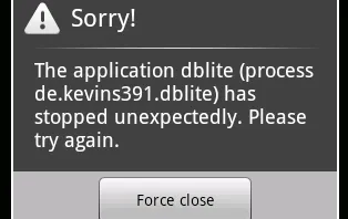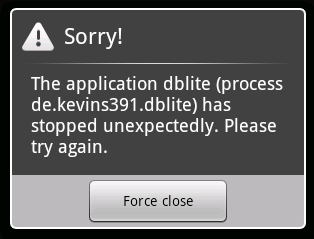 Jedoch funktioniert mein App nicht, mein Handy vibriert ein paar mal und dann kommt das: