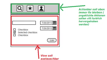 Meine Idee war, durch das anklicken der unterschiedlichen Icons in der Action Bar zwischen unterschiedlichen Views zu switchen.