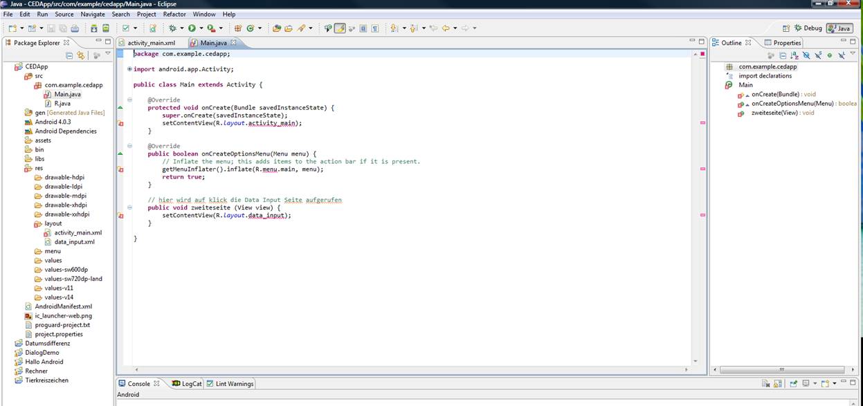 wie so viele vor mir hatte ich vor einigen Wochen eine fixe Idee eine eigene App zu programmieren und diese kostenlos den betroffenen Leuten den ich helfen wollte zur Verfügung zu stellen. Aus der Idee wurde schnell der Kauf von zwei Androidbüchern ("Android-Apps entwickeln" von Uwe Post und "Android 4" von Thomas Künneth). Schon nach kurzem durchblättern der Bücher habe ich Schei**e gerufen da ich nichts verstehe und jetzt stehe ich vor diversen Problemen meine Idee in die App umzusezten.