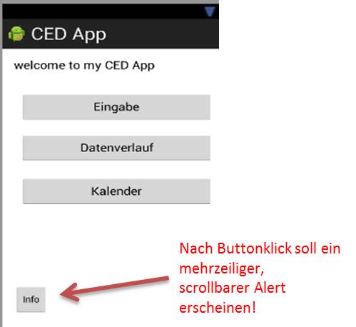 ich bin gerade dabei mich in Android/ JAVA einzuarbeiten und versuche mich derzeit an einen mehrzeiligen, scrollbaren Alert nach Buttonklick zu erstellen wo ich jetzt Probleme habe.