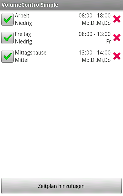 kontrolliert sie die Lautstärke zu den festgelegten Zeiten an