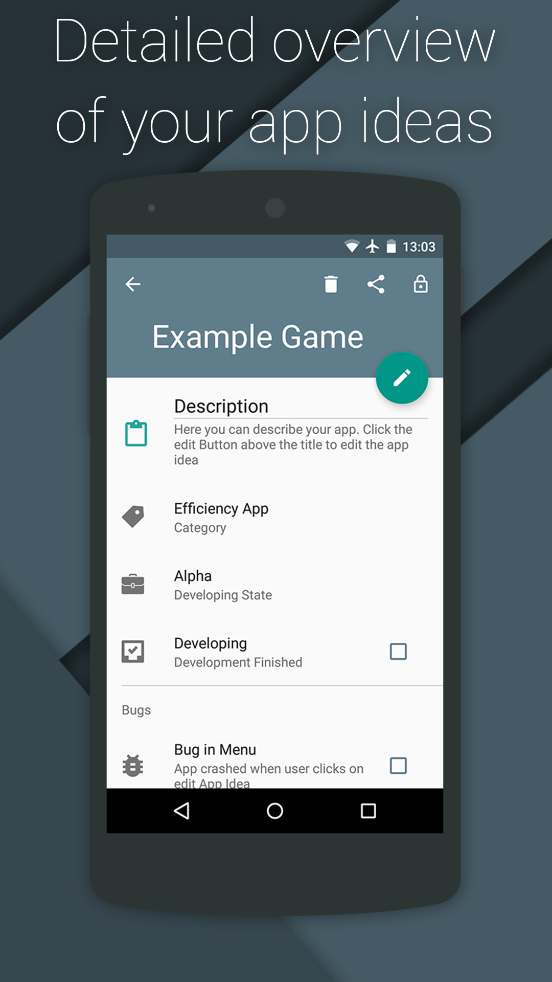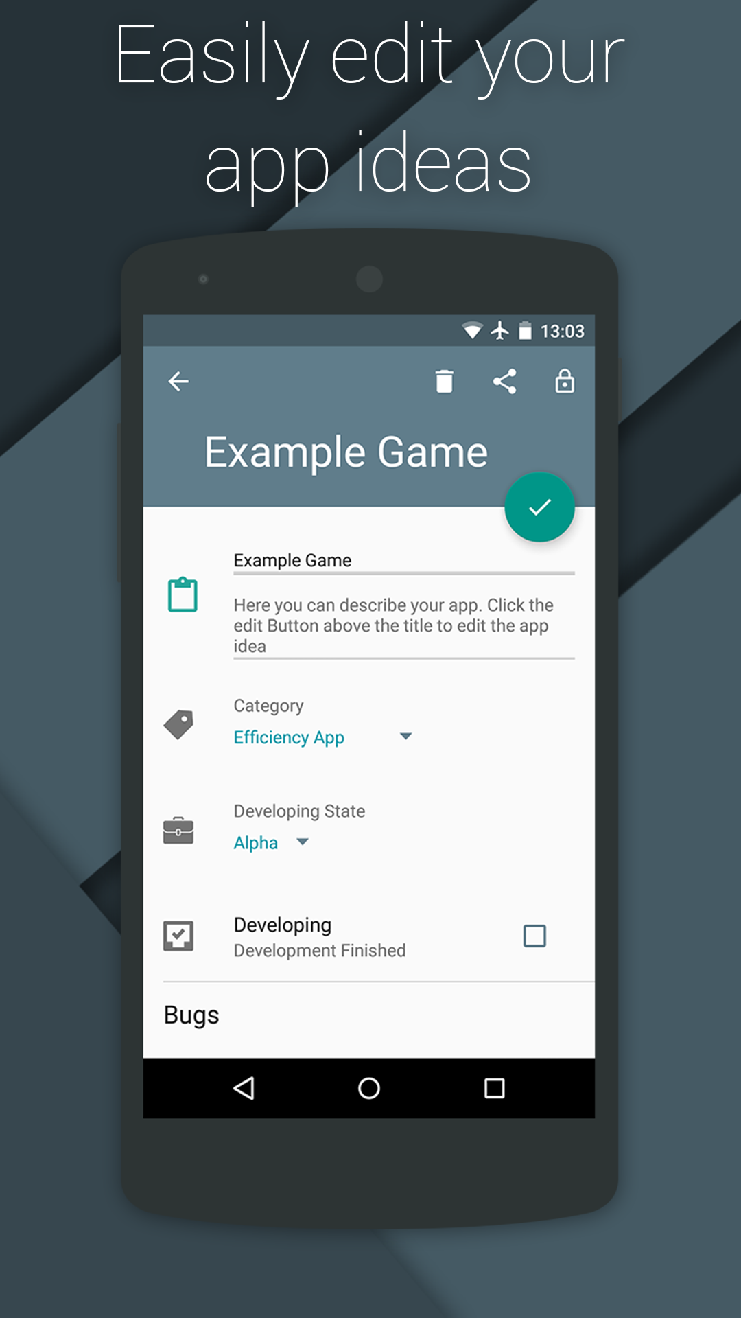 App Ideas hat es zum Ziel Entwicklern dabei zu helfen Ideen für Apps zu notieren und auch während der Entwicklung der App Unterstützung bieten.