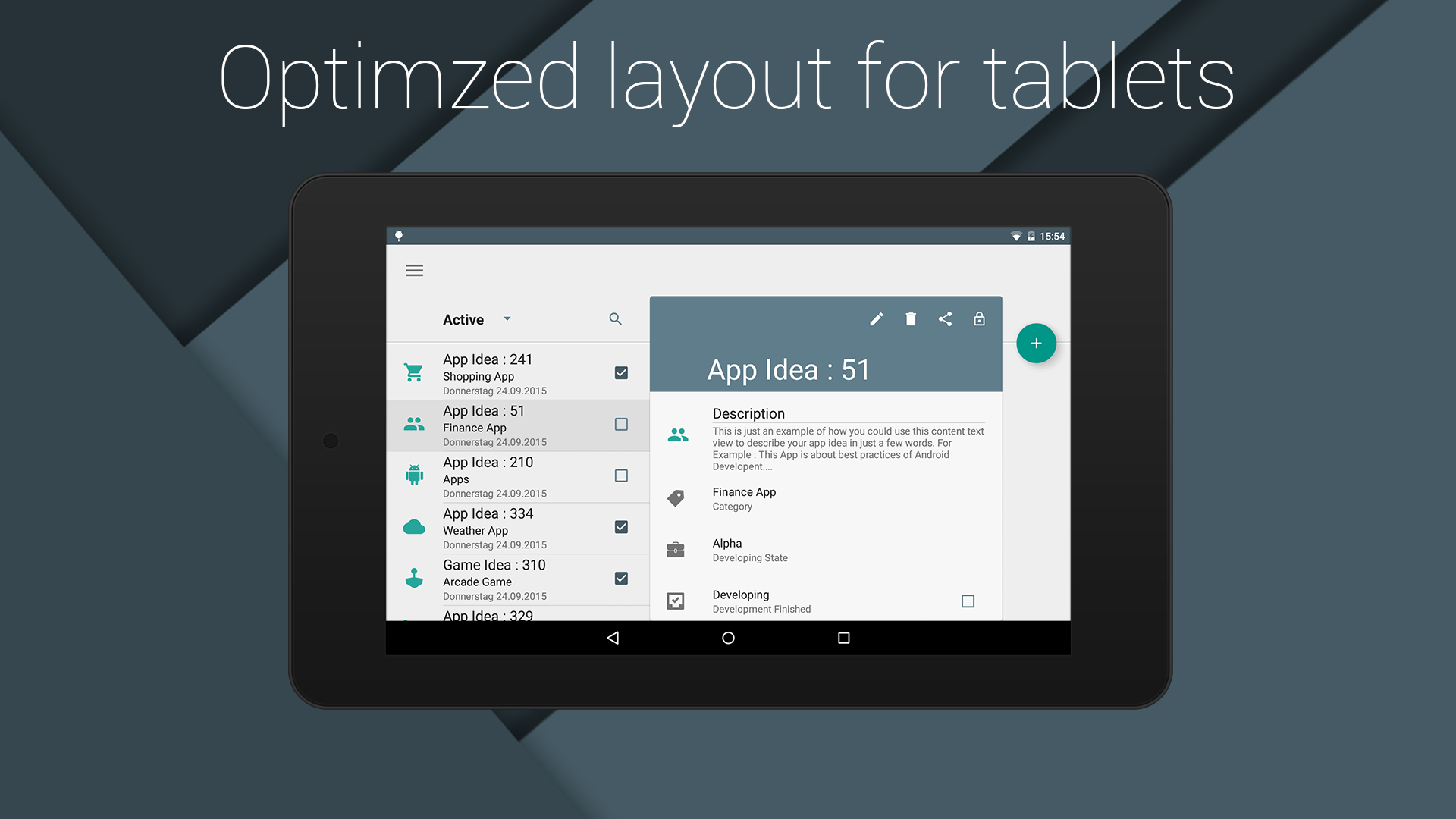 Für das Design verwenden wir das Material Design von Google und wir haben die speziell für Tablets optimiert.