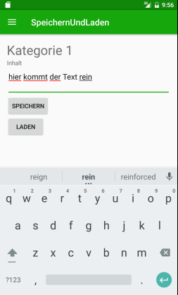 Ziel ist das man also eine Kategorie auswählen, dort in einem EditText was reinschreiben kann und den Inhalt speichern und laden kann.