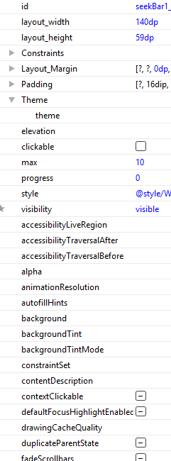 Wenn ich im Layout einen Button , eine Seekbar oder was anderes setze gibt es ja für jedes eine menge Properties welche man dafür verwenden kann.