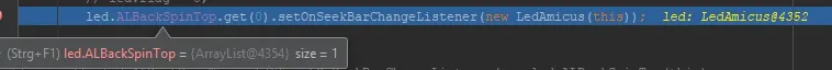 Hier nun die LedAmicus Java Class. Wenn ich den Debuger Starte hat led.ALBackSpinTop.get(0)