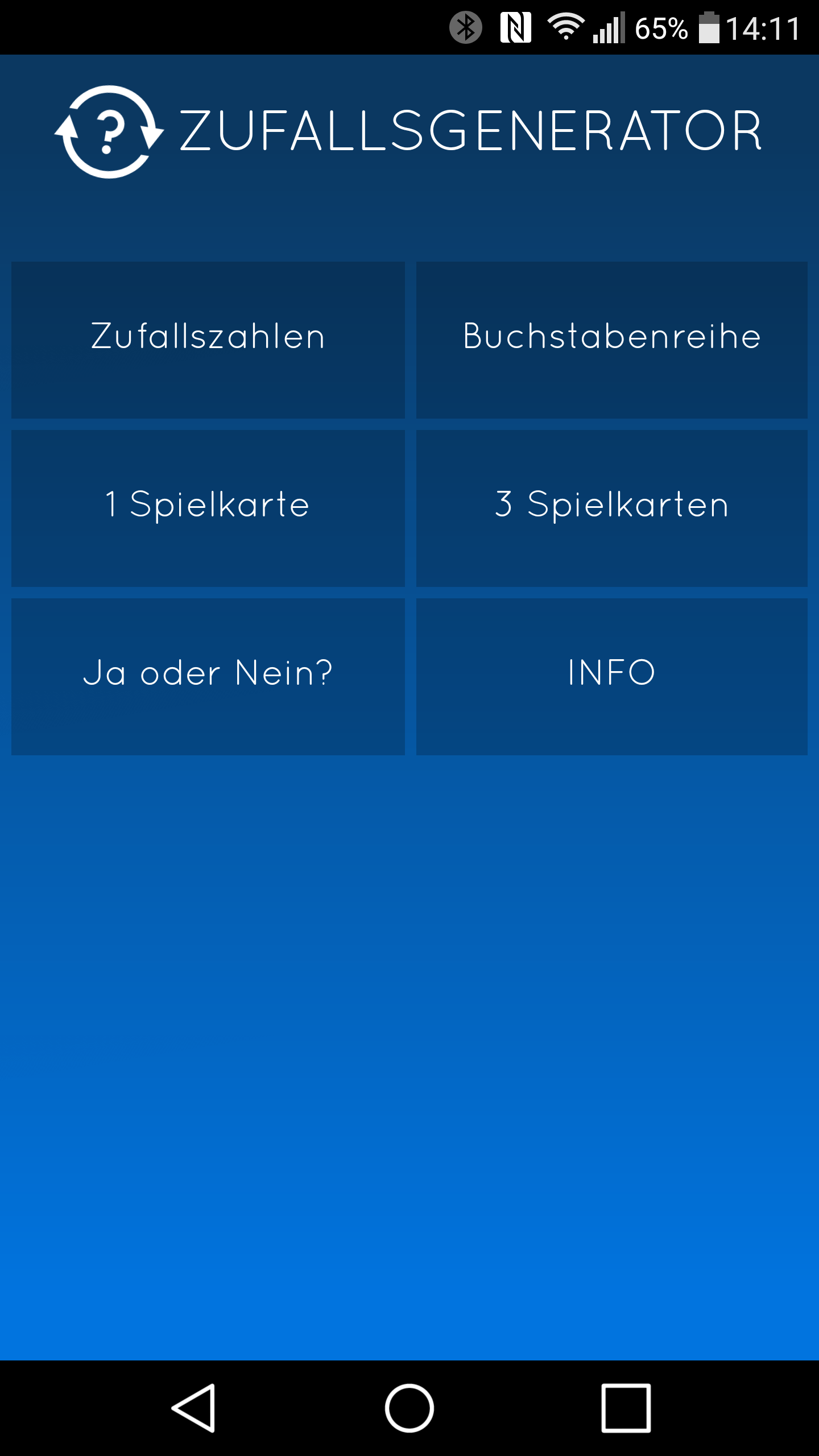 Eine einfache, minimalistisch gehaltene App, die zufällige Zahlen und Buchstabenreihen erzeugt, auch Spielkarten und eine Entscheidungshilfe.