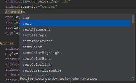 "Strg+Leertaste" funktioniert auch (war mir auch neu), allerdings muss der Code dann erst im XML file eingefügt werden. Das ist dann schon sehr umständlich, wenn man sich viele Attribute in der Hilfe ansehen möchte.