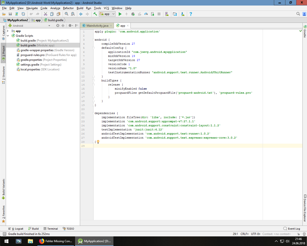 Wenn du jetzt ein Projekt erstellst wird das Gradle für API 27 erstellt.