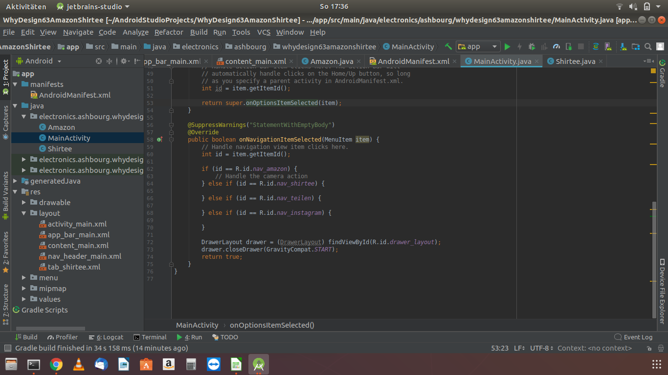 Wie verknüpfe ich das Layout nun mit dem Punkt shirtee im Drawer