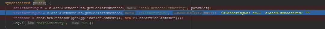 if ((Boolean) isTetheringOn.invoke(instance, null)) {