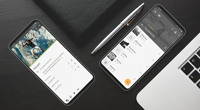 Links: Die Detailansicht | Rechts: Listenansicht der Mindmap "Trip Planning"