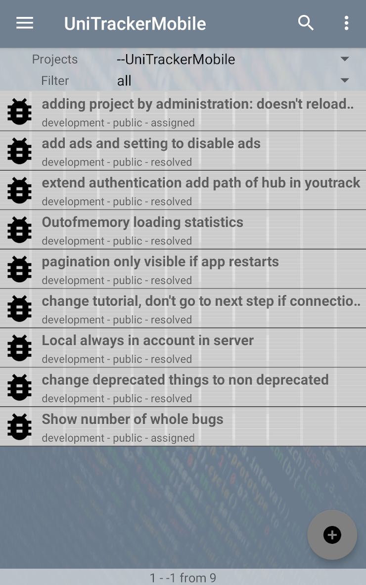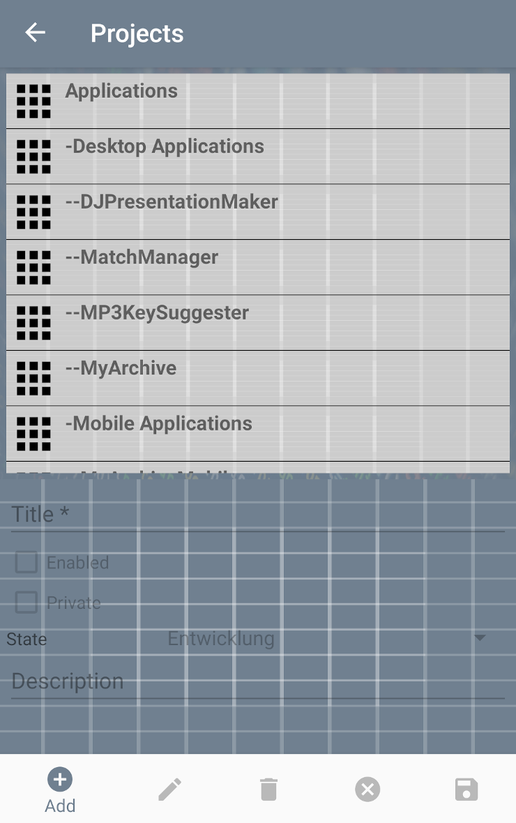 Außerdem enthält die App auch eine eigene simple Implementierung eines Bug-Trackers. So kann man auch Bugs in der App notieren, ohne diese einem Bug-Tracker zuzuordnen.