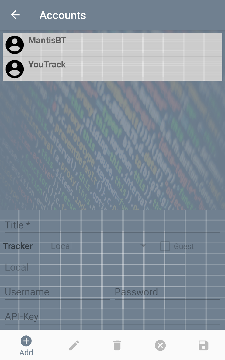 In der App kann man für jeden Bug-Tracker einen eigenen Account anlegen. Durch diese Accounts kann man schnell zwischen den verschiedenen Bug-Trackern hin und her schalten.