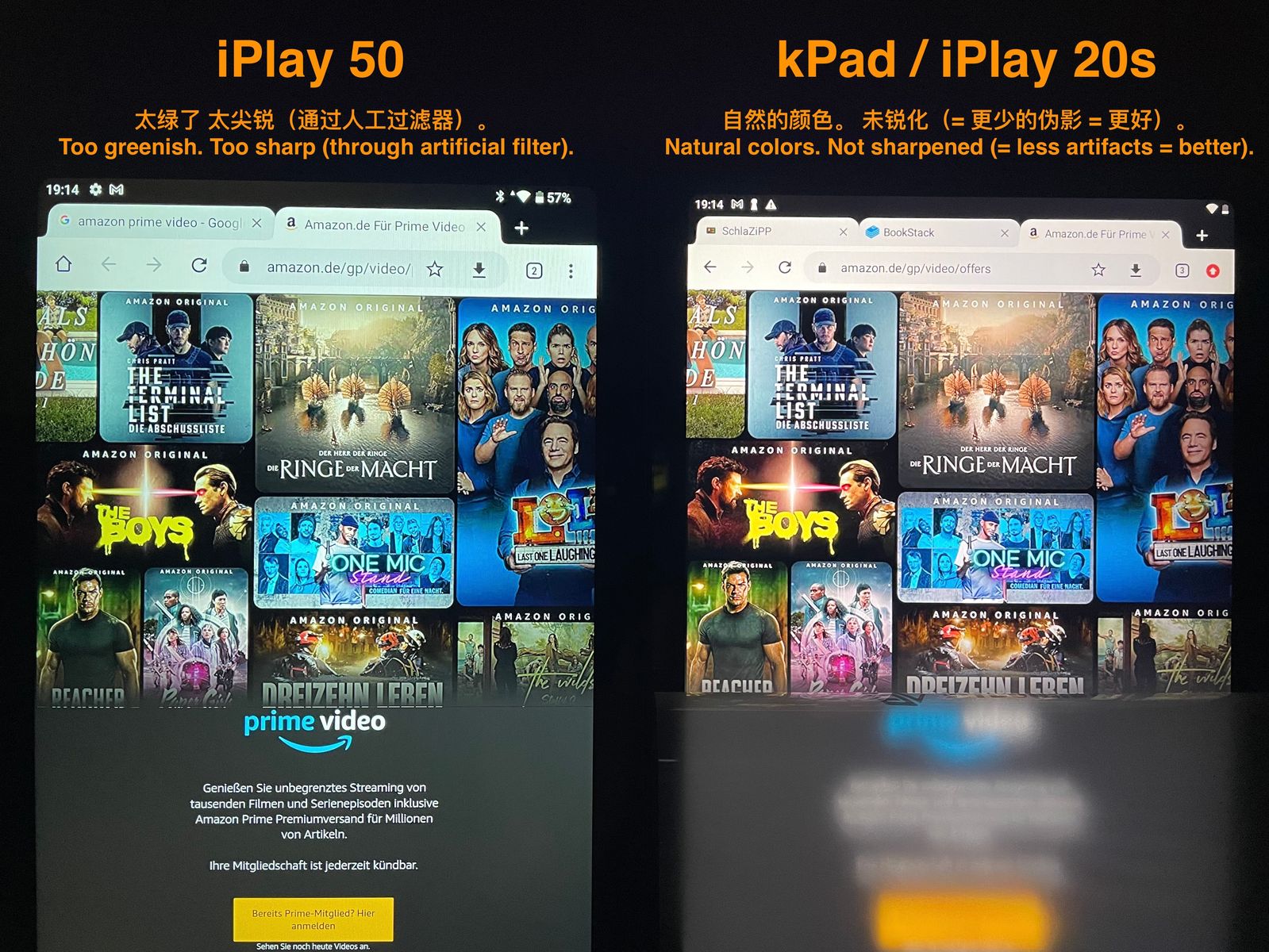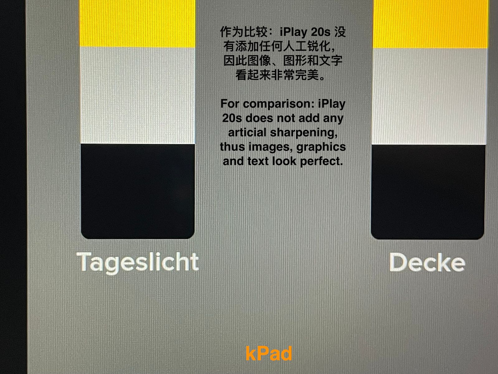 Vergleicht man das Display des iPlay 50 mit den exzellenten Display des kPads und iPlay 20s, dann fällt auf, dass