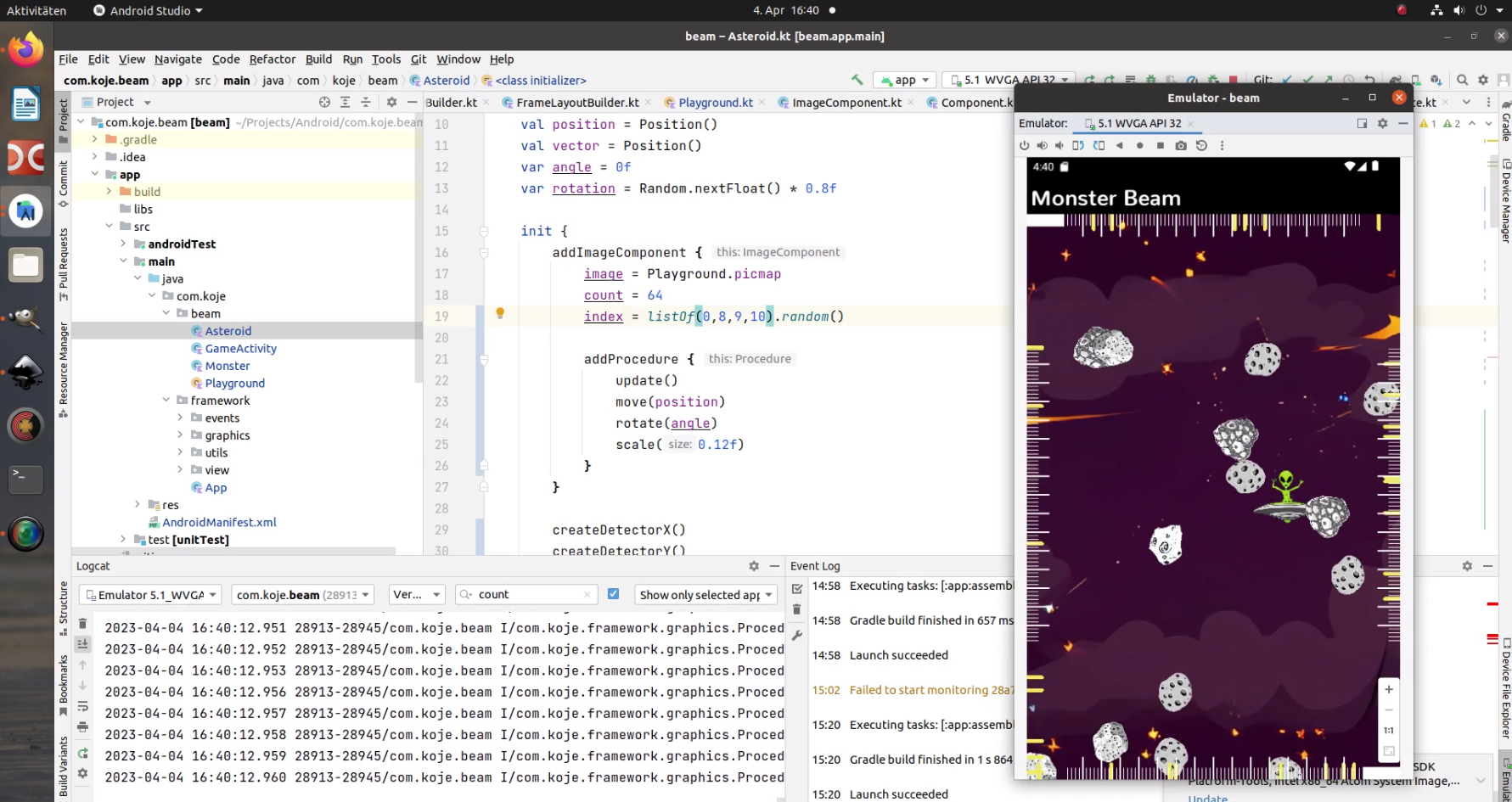 ich habe mal ein App Grundgerüst bei Github eingestellt bei dem ihr euch bei Bedarf bedienen könnt. Für die Grafikausgabe wird ein GLSurfaceView verwendet. Die Funktionen, um Grafiken auf dem Screen anzuzeigen und zu bewegen habe ich selber geschrieben. Es wird kein zusätzliches Framework benötigt. Momentan ist aber alles auf 2D ausgelegt. Die schon vorhandenen Beispielgrafiken habe ich von einer AI generieren lassen (Crayon AI). Viel Spaß damit ![]()