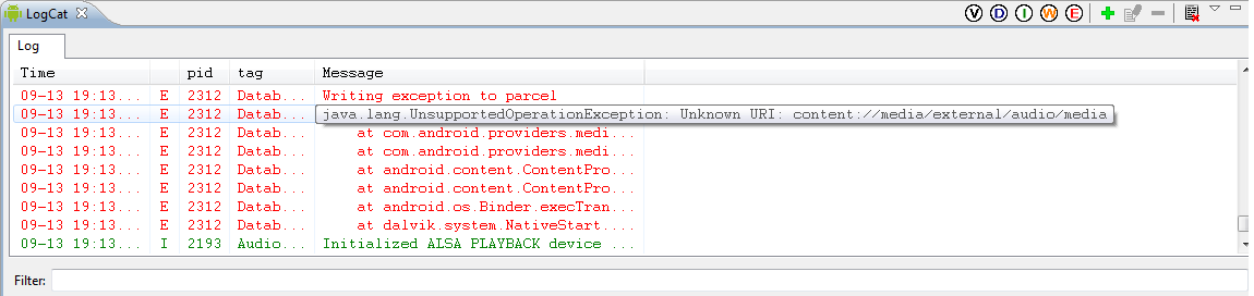 Die Logcat ibt mir eben nru die obige Warning aus leider:(,