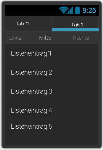 Als Steuerung hat die App lediglich zwei Tabs (Actionbar.Tabs) die dann jeweils ein Fragment (android.app.Fragment) erstellen.