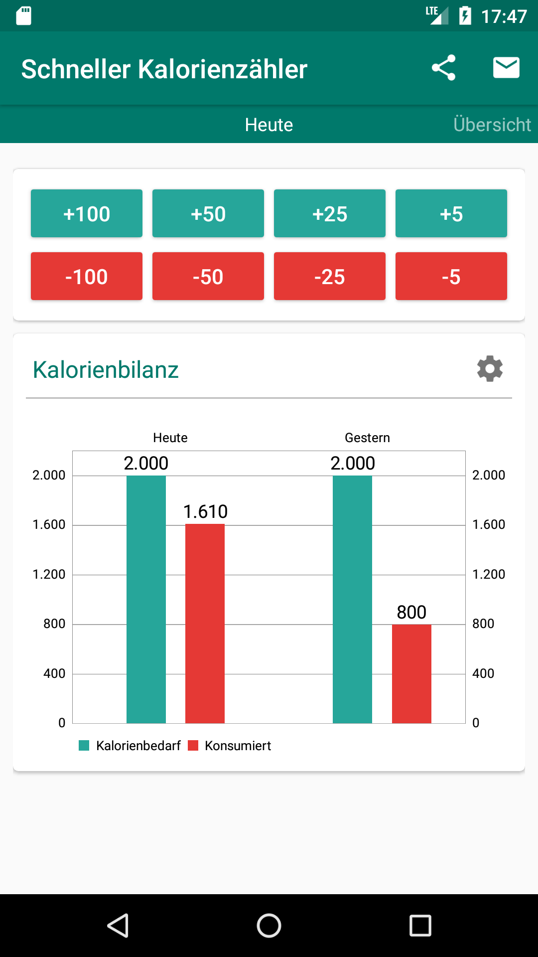 Der Schnelle Kalorienzähler für dein Android Smartphone / Tablet bietet dir jetzt die Alternative! Mit nur wenigen Klicks hast du deine täglichen Kalorien erfasst. Ganz ohne Anmeldung und vorherige Registrierung. Jetzt kostenlos herunterladen!