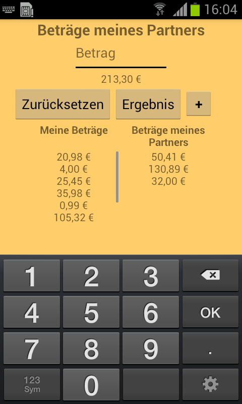 - Die Eingaben werden gespeichert, somit müssen nicht alle Beträge auf einmal eingegeben werden