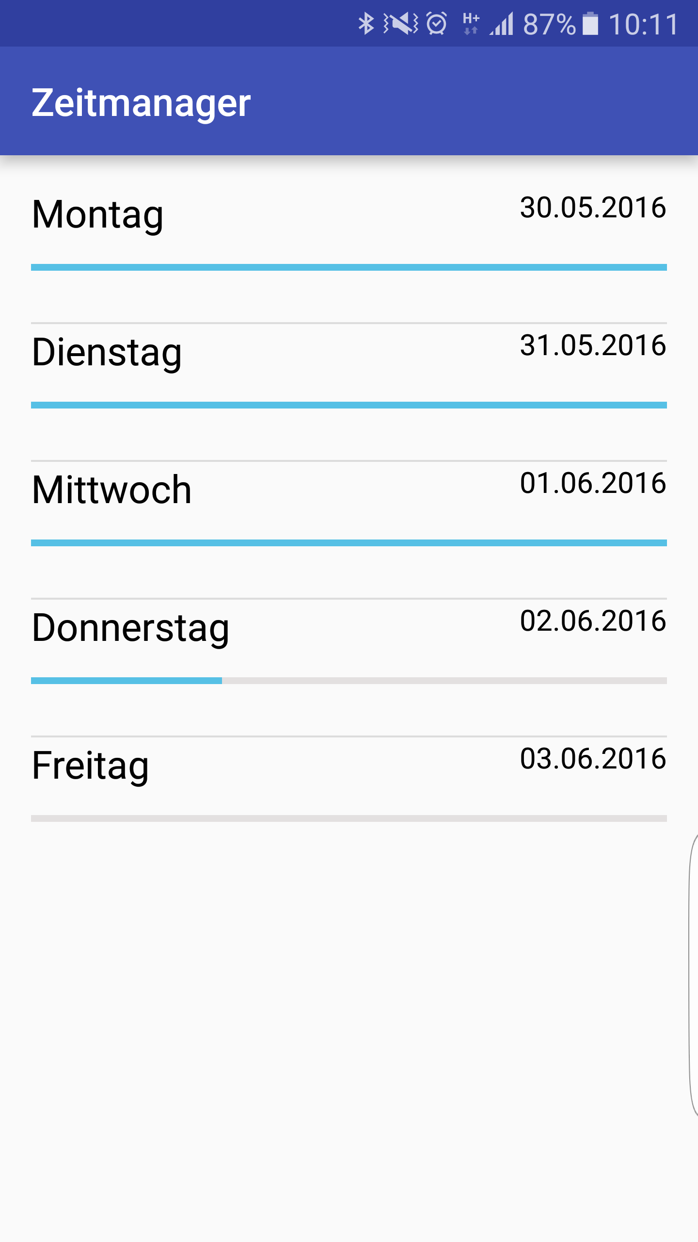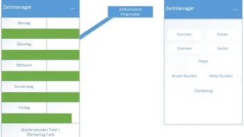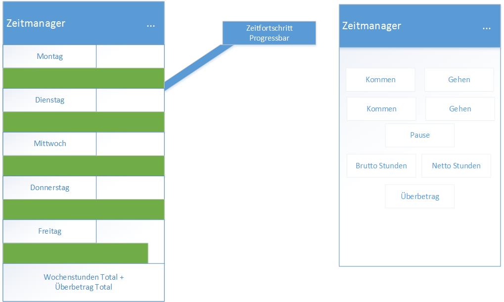 Naja ich wollte halt den Wochentag, das Datum und die Progressbar für den Fortschritt des Tages also wenn ich auf die App schau z.B. um 12 Uhr dann ist die Progressbar bis zur hälfte gefüllt weil ich von 8 schon z.B. 4 stunden hinter mir hab.