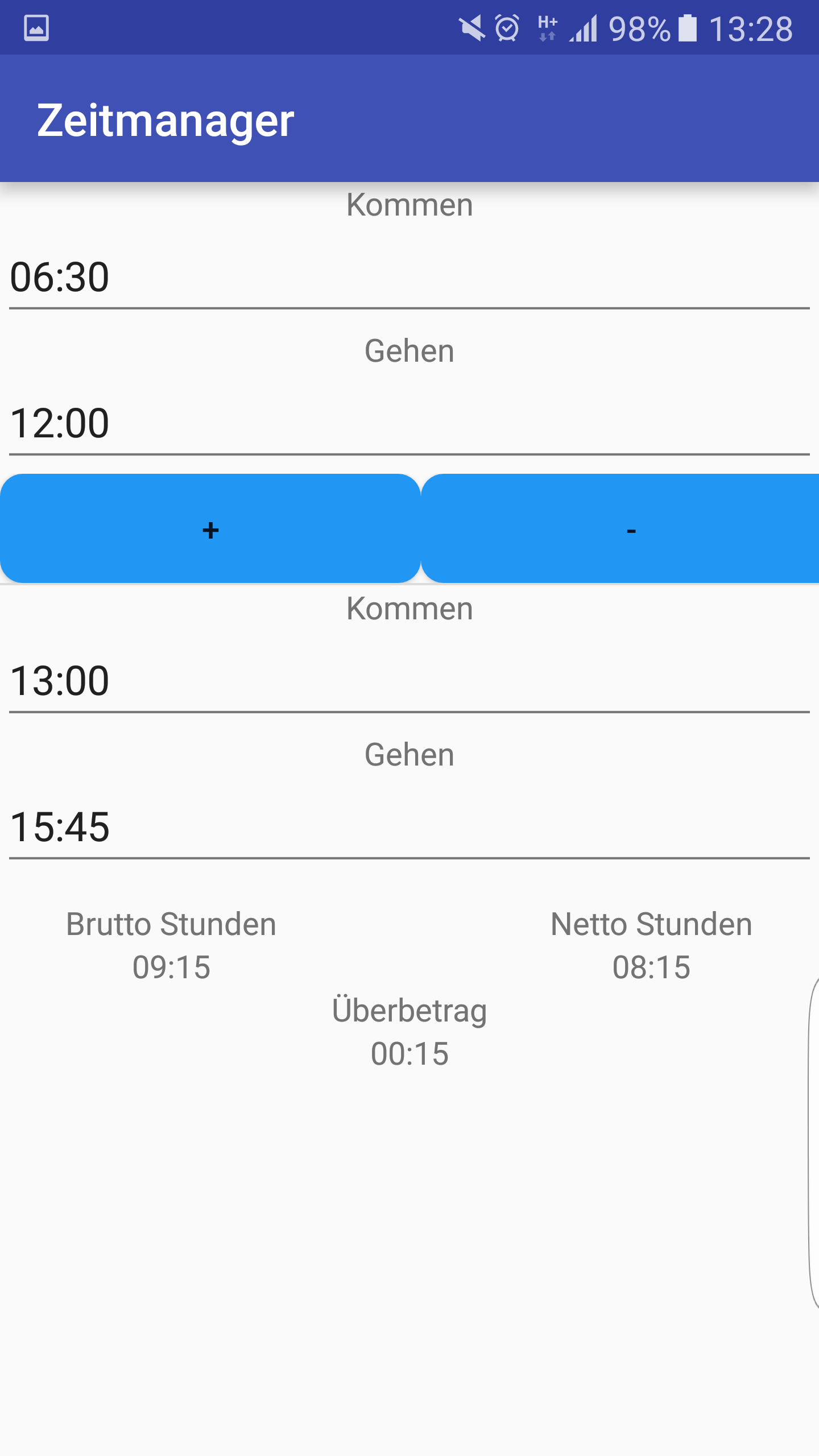 Und wenn ich mich dann Ausstempel und 15 minuten z.B. länger Mittag machen dann würde mein Programm auch nicht mehr dafür funktionieren.Daran hab ich gar nicht gedacht muss ich mal mit einbauen in das jetzige C# Programm dann hab ich die ganze logik und muss nicht die ganzen Rechnung beim Programmieren für Android ausdenken