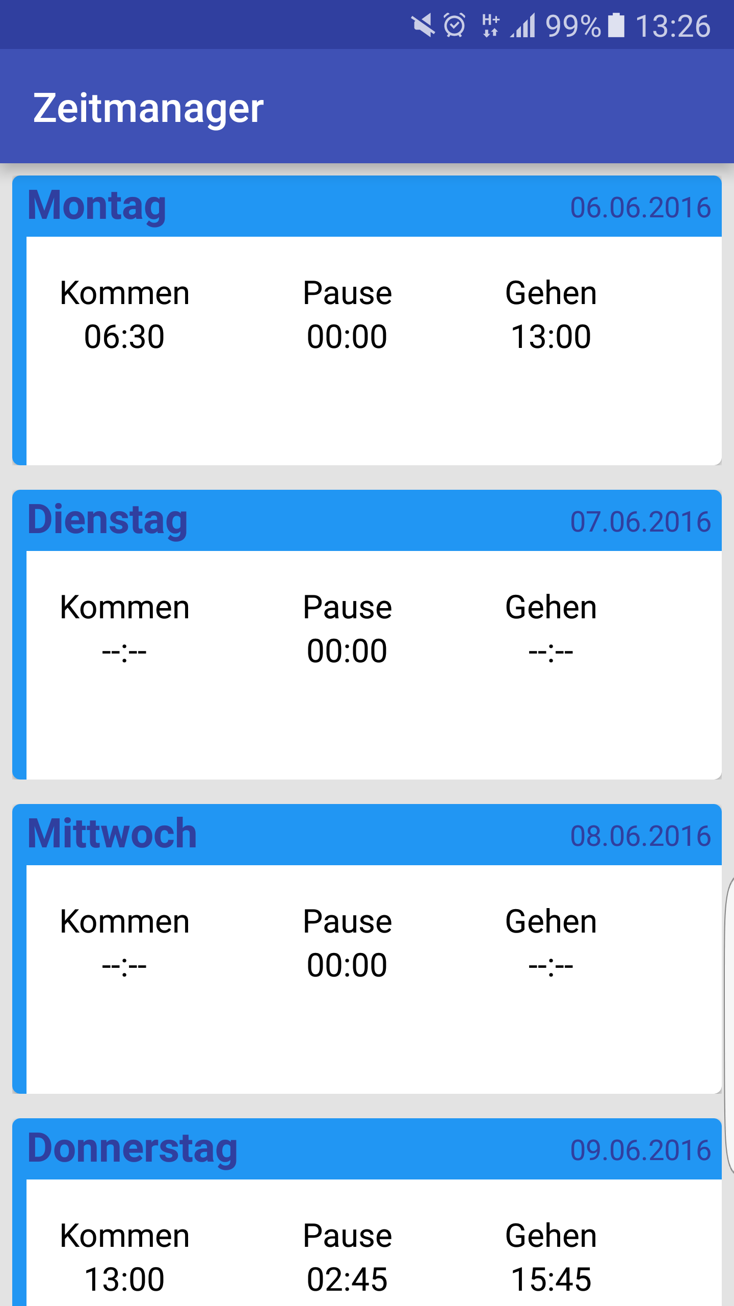 Ja das mit den bearbeiten oder nach tragen geht im Detail also wenn man auf die Karte drückt kommt man ins Detail View und mann kann dort zusätzlich noch zeiten mit Eintragen bzw Bearbeiten was schon drinnen steht
