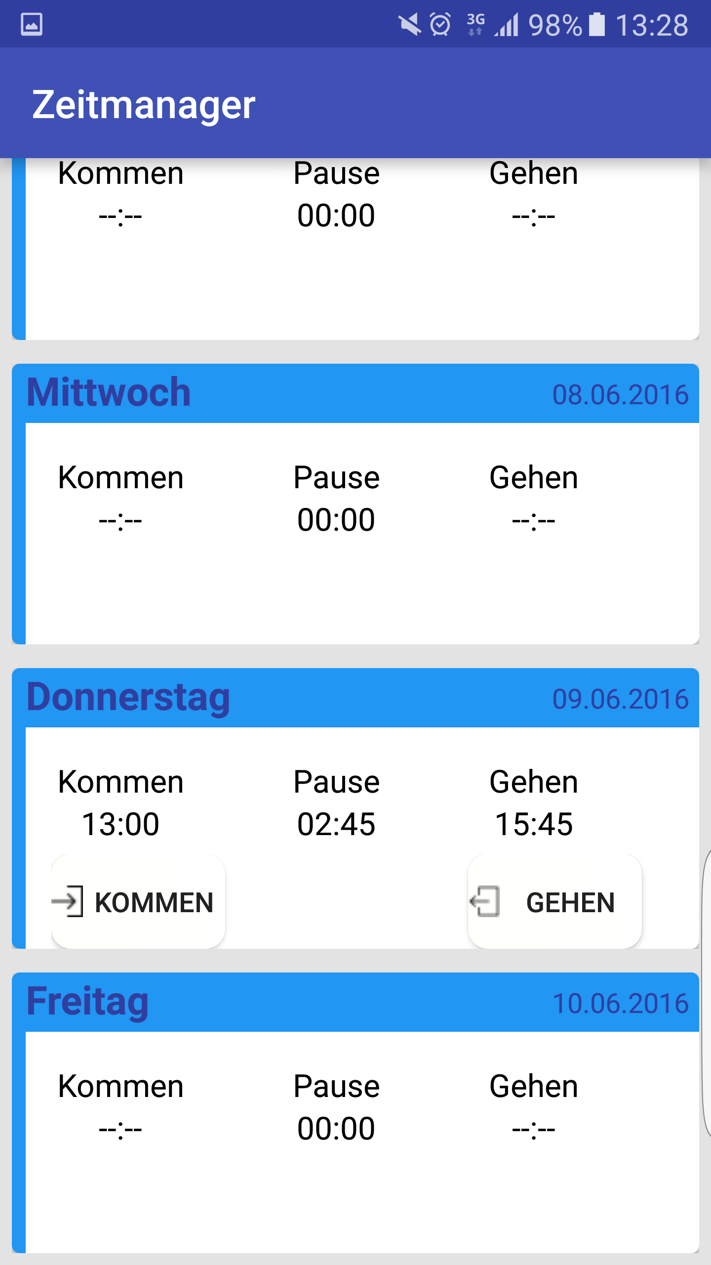 Das mit den 2 kommen und 2 Gehen Zeiten würde ich mit einbauen aber in den Einstellungen sollte man es Ein und Ausschalten können und feste Pausenzeiten eintragen können.
