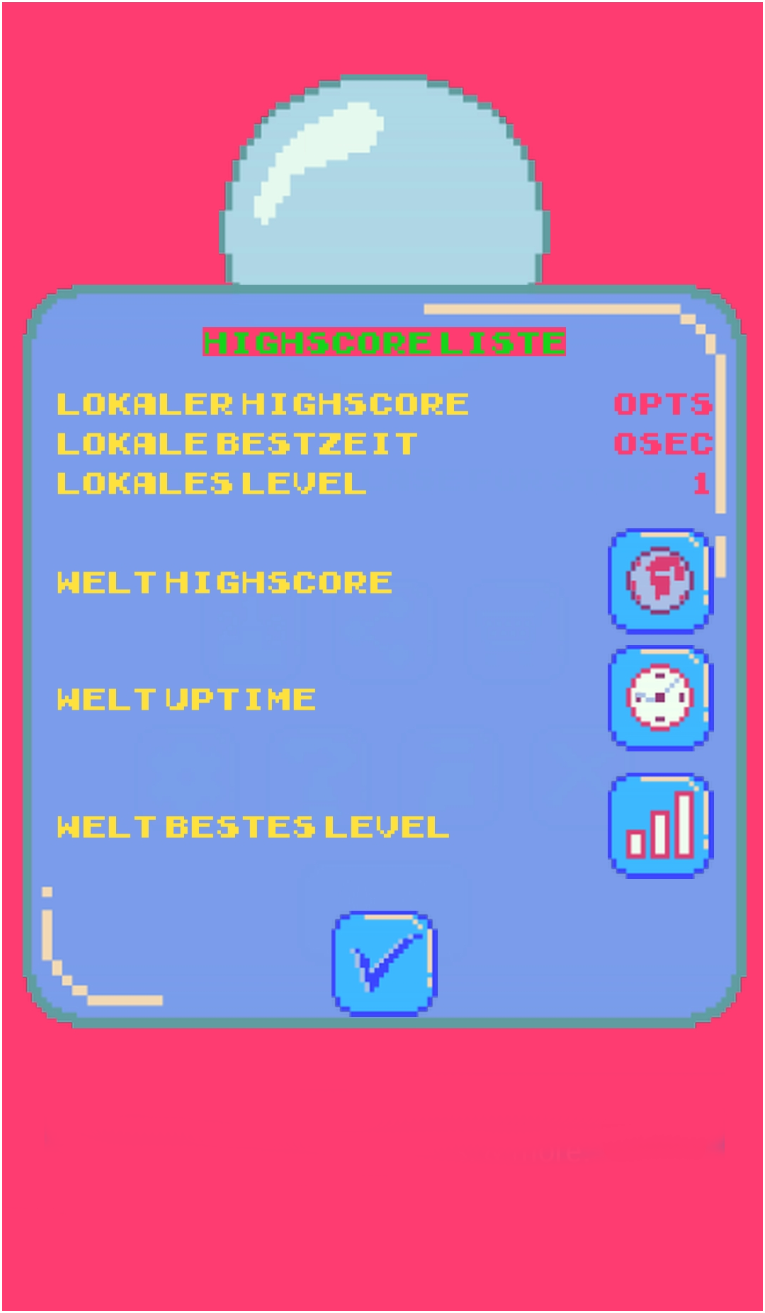 Das Forum hat mich bei einigen Schwierigkeiten beim entwiclen der App toll unterstützt, wofür ich sehr dankbar bin! Den Rest habe ich als Einzelkämpfer durchgedrückt (inkl. JAVA lernen, Gif-Animations, Sounds/Musik und Retro-styled Schriftfont...)