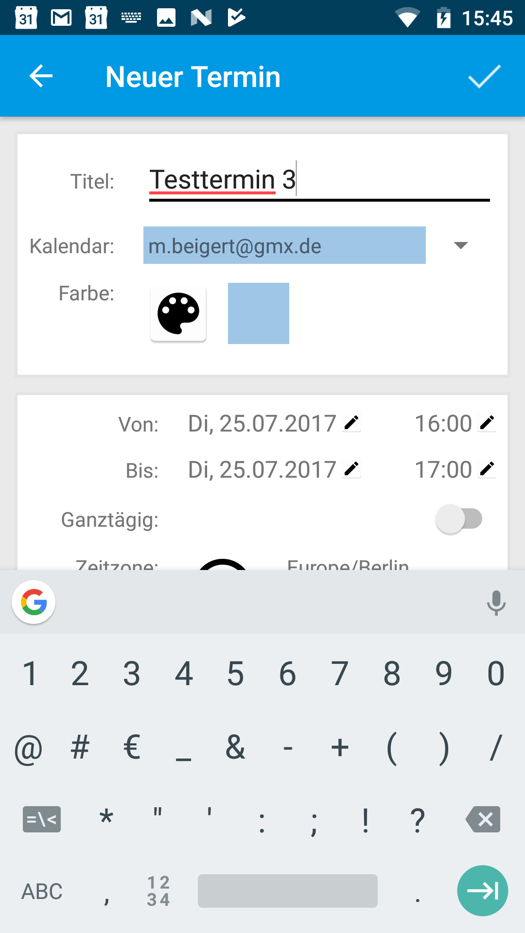 Dann füge ich einen neuen Termin ein (zweiter Screenshot).