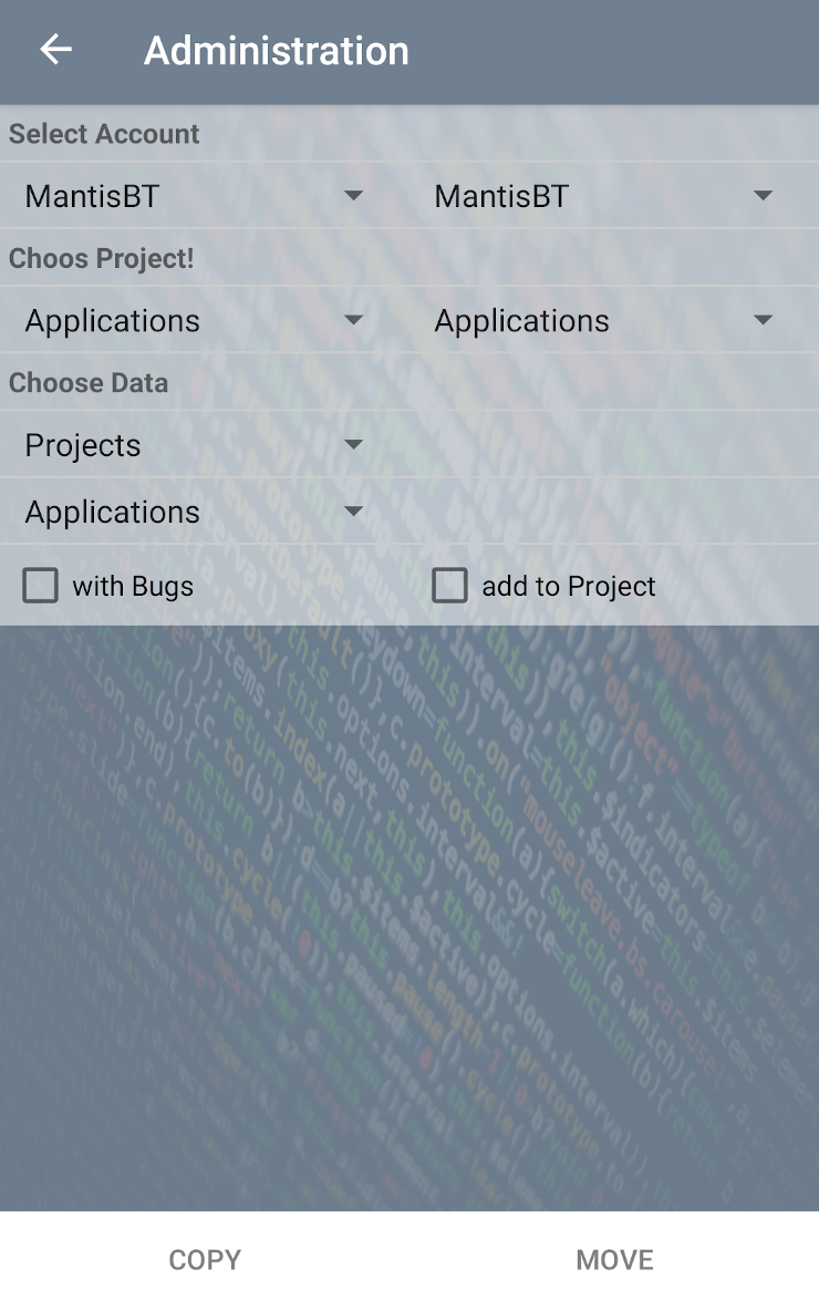 Man kann auch Bugs oder ganze Projekte kopieren oder verschieben. Und einzelne Bugs in XML oder PDF exportieren.