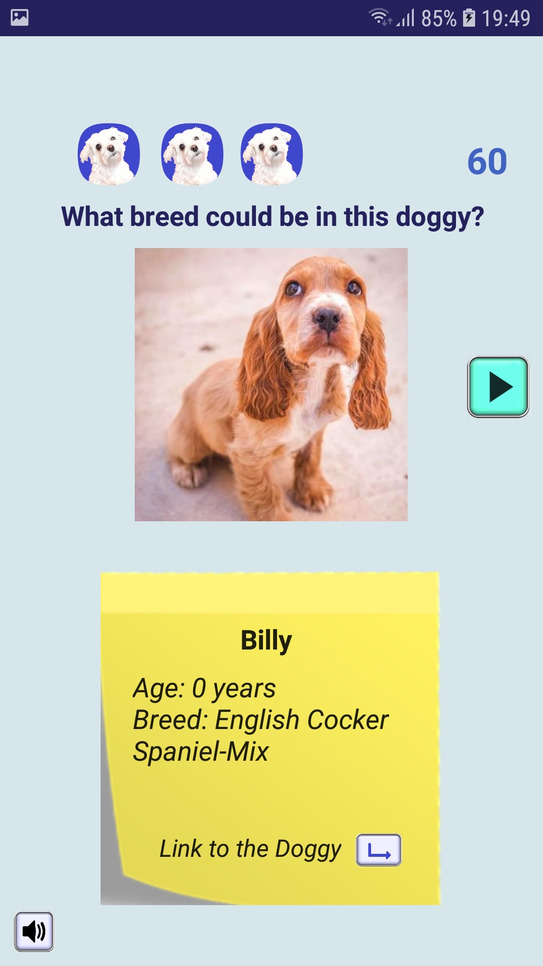 Hi! Ich habe eine App erstellt, die dabei helfen soll, Hunde aus Tierheimen zu vermitteln. Sie heißt „Adopt a Doggy Quiz“ und kann kostenlos im Google Play Sore runtergeladen werden. Es ist eine einfache Quiz App, in der man die Rasse errät, die in einem Tierheimmischling stecken könnte. Anschließend erscheint ein Link zu der Vermittlungsseite, wo der Mischlingshund adoptiert werden kann. Mein Ziel ist es, auf Tierschutzorganisationen aufmerksam zu machen und die Vermittlungschancen von Tierheimhunden zu verbessern.