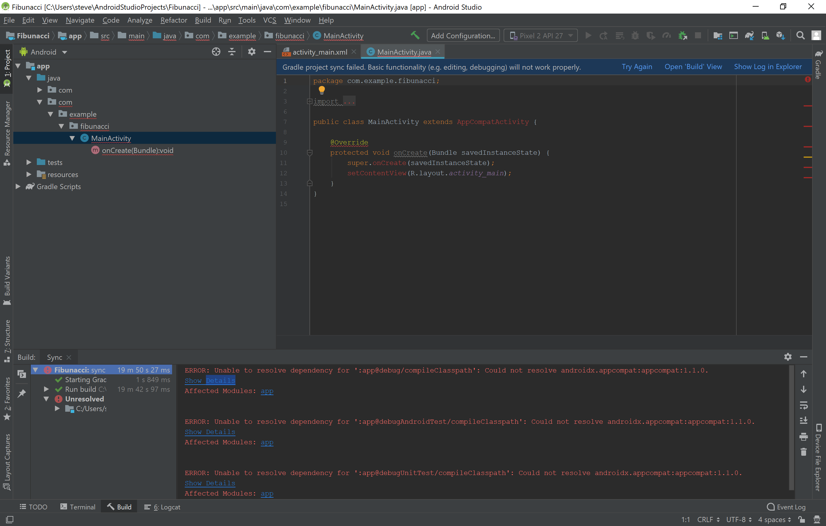 ich habe diese Woche das erste Mal mit Android Studio gearbeitet. Ich hatte mir ein Projekt erstellt, dies funktionierte auch.