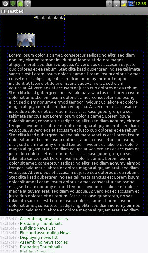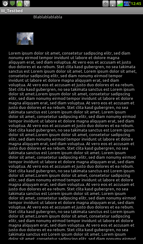 So, um das Ganze mal etwas zu veranschaulichen ein paar Screens von meinem Stand bis jetzt. Auf screen 1 sieht man, wie die App aussieht, wenn man von DevActivity ableitet, auf screen 2 sieht man, wie es aussieht, wenn man dann wieder normal von Activity ableitet.